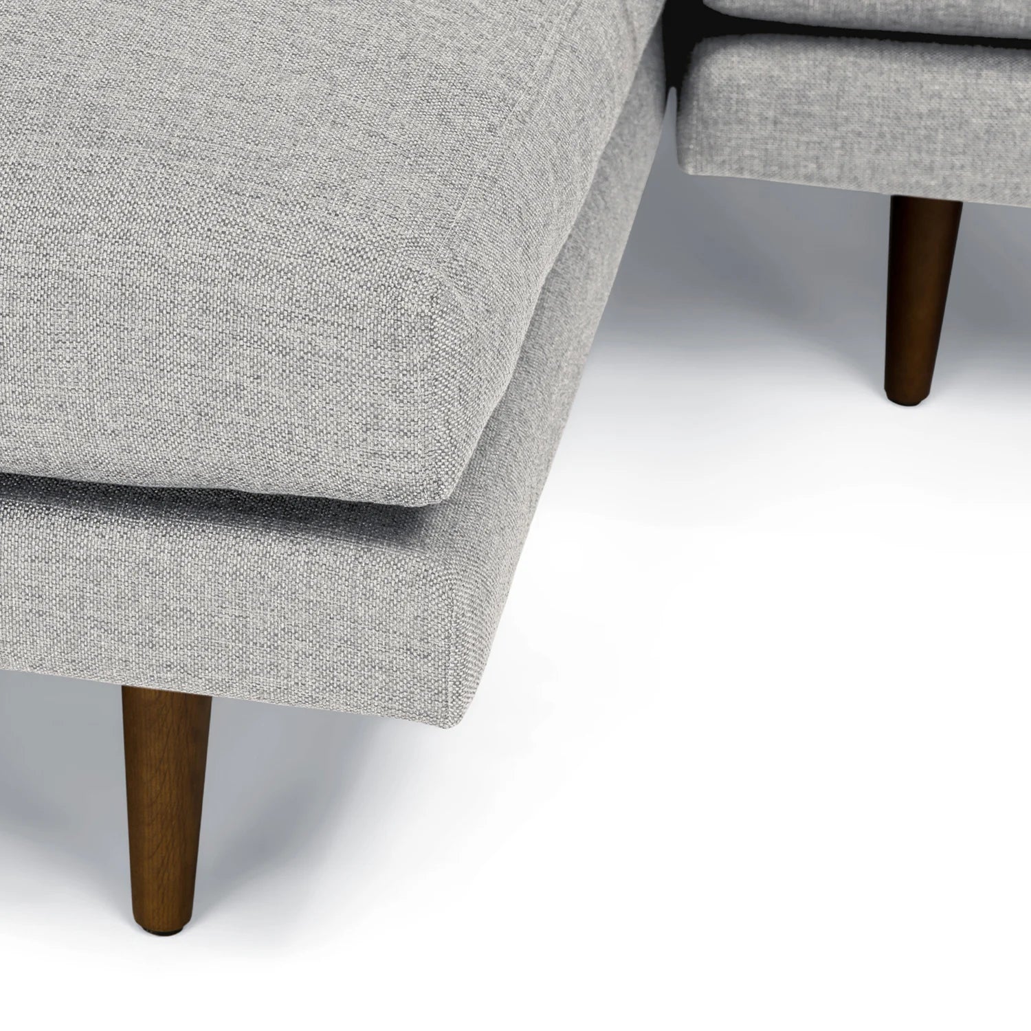 Designed for those who love to lounge in style, the Anne L-Shaped Sectional offers ample space and luxurious comfort. The deep seating and plush cushions make it perfect for relaxation or entertaining. Built with solid teak wood legs, this sectional is sturdy and elegant. The 100% polyester luxury fabric is stain-resistant and easy to clean, making it a practical and stylish choice for any living room.