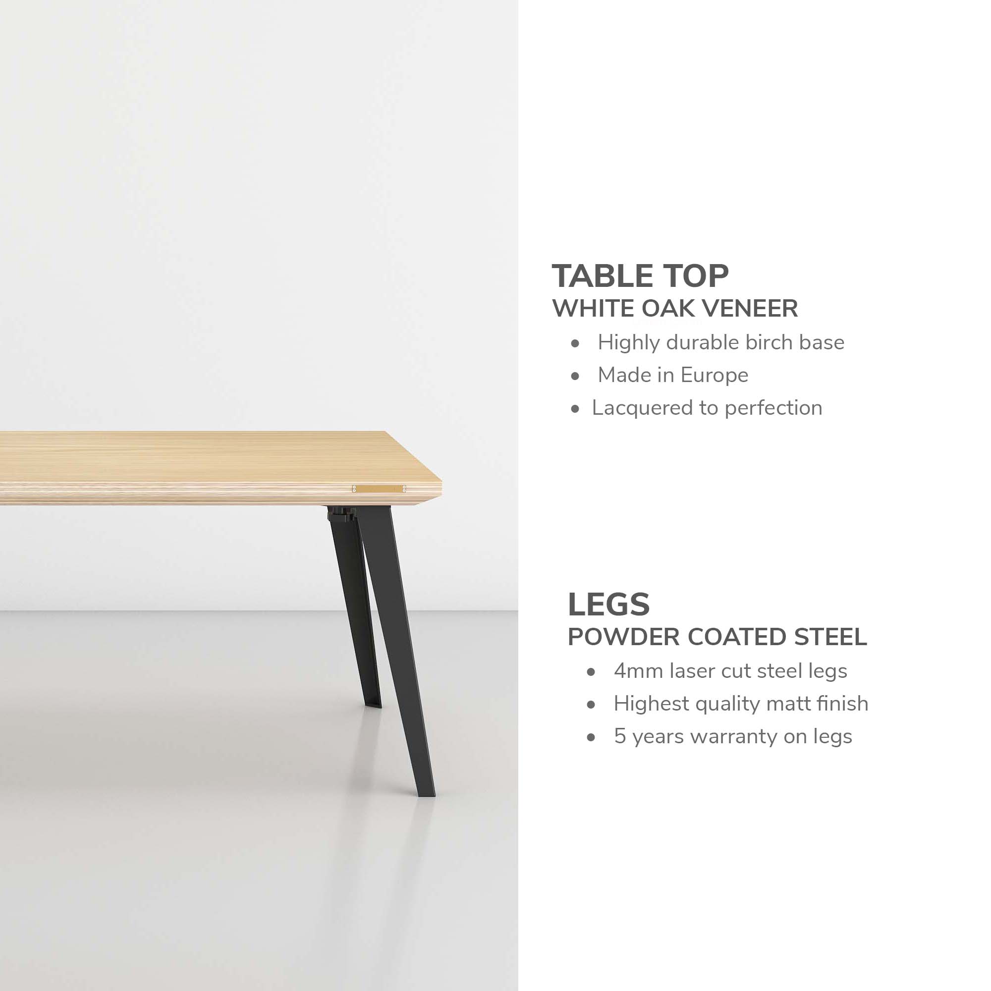 The perfect companion for your sofa. A light, airy design that goes with anywhere. Sturdy, powder-coated steel legs attach in seconds to a surface sized to fit everything you need close at hand. The high-grade white-oak veneer surface adds a modern feel and is sealed with a polyurethane clear coat making it easy to wipe clean with soap and water.