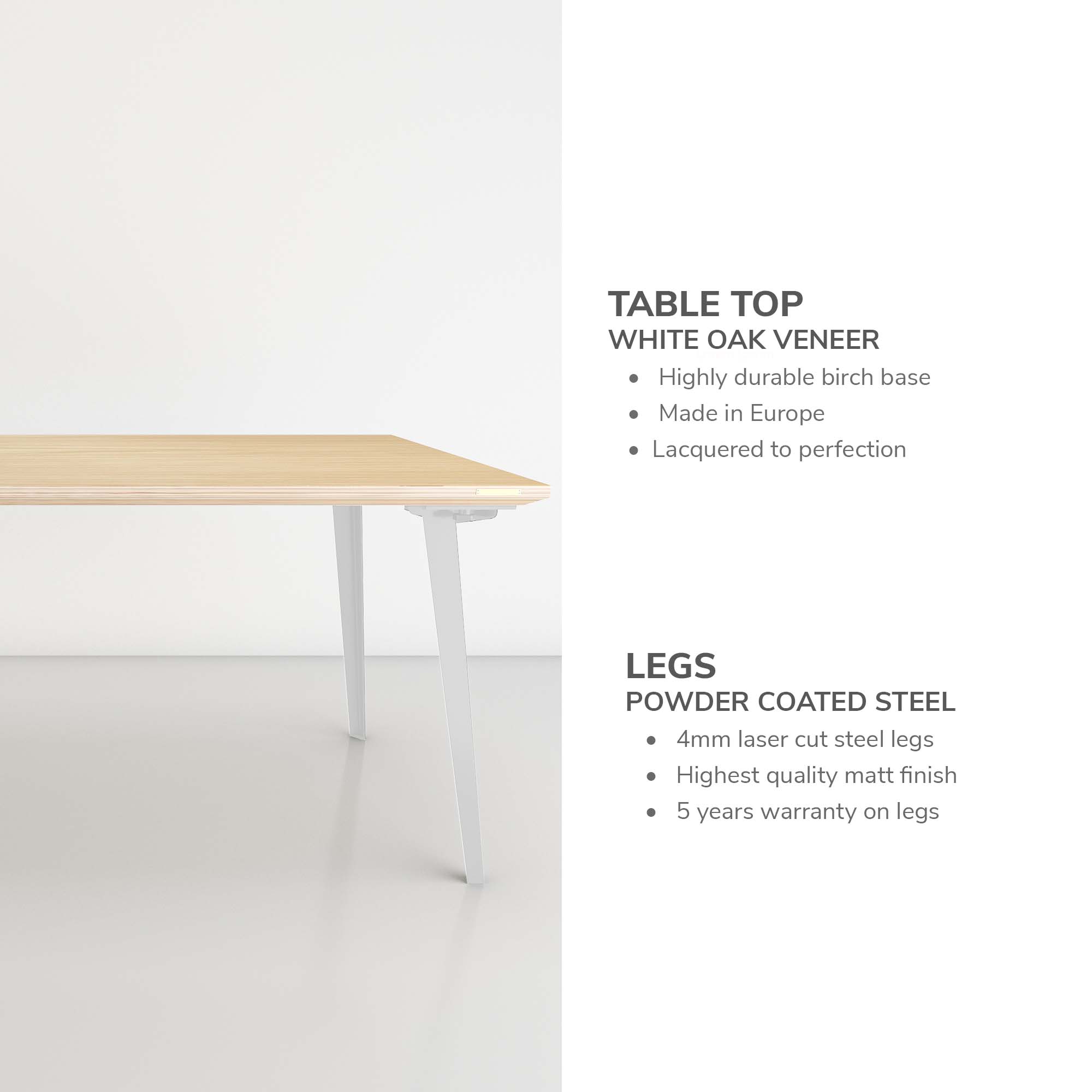 Inspired by modern Scandinavian designs, our dining table has no visible support giving it a minimal look. The table uses groundbreaking & innovative steel stiffeners that are flush with the bottom surface to give it a rock-solid groundedness.