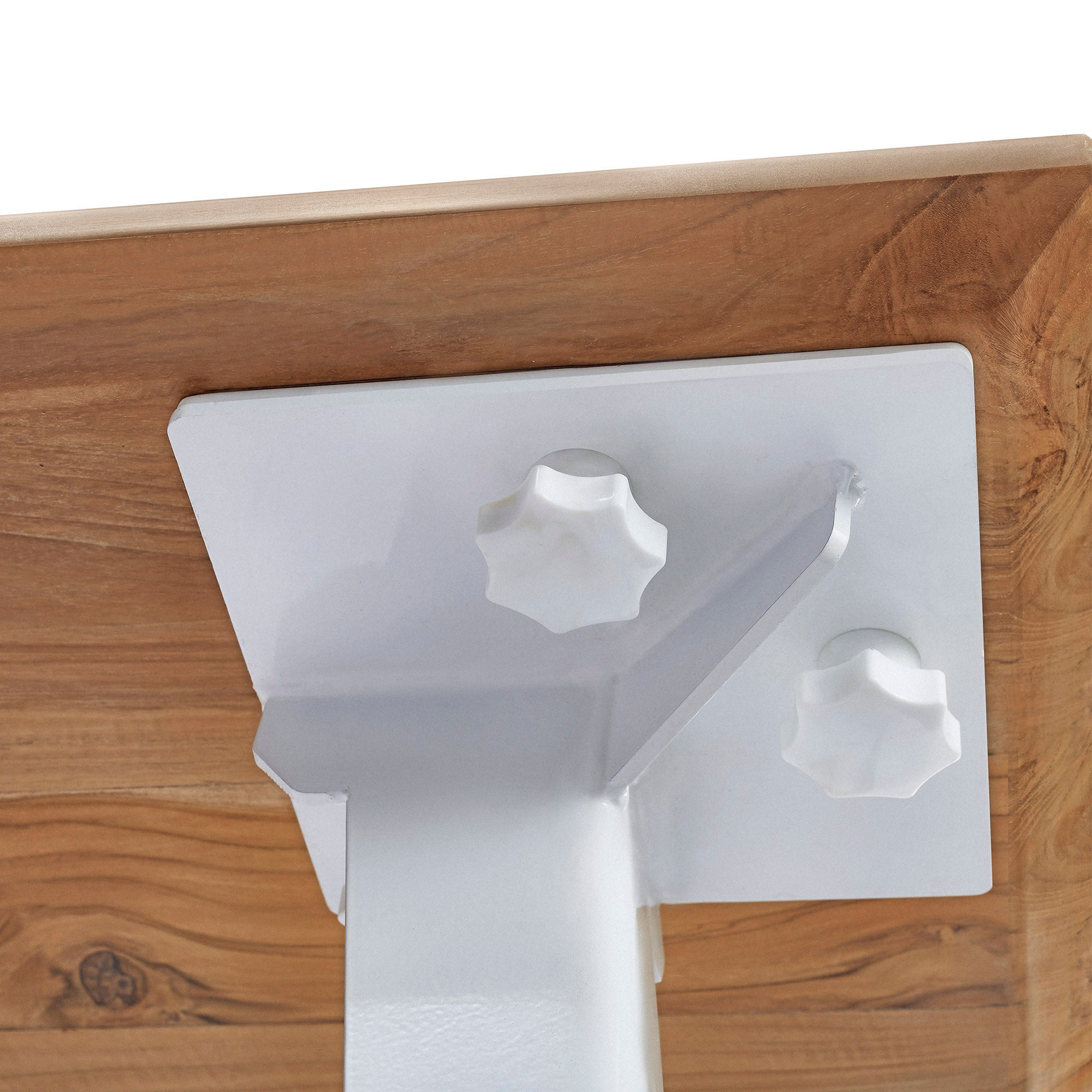 We use selected teak wood lumber seasoned at 6%-10% moisture and join them together using spline joints, creating a solid teak tabletop that is beautiful and lasts a long time of use.