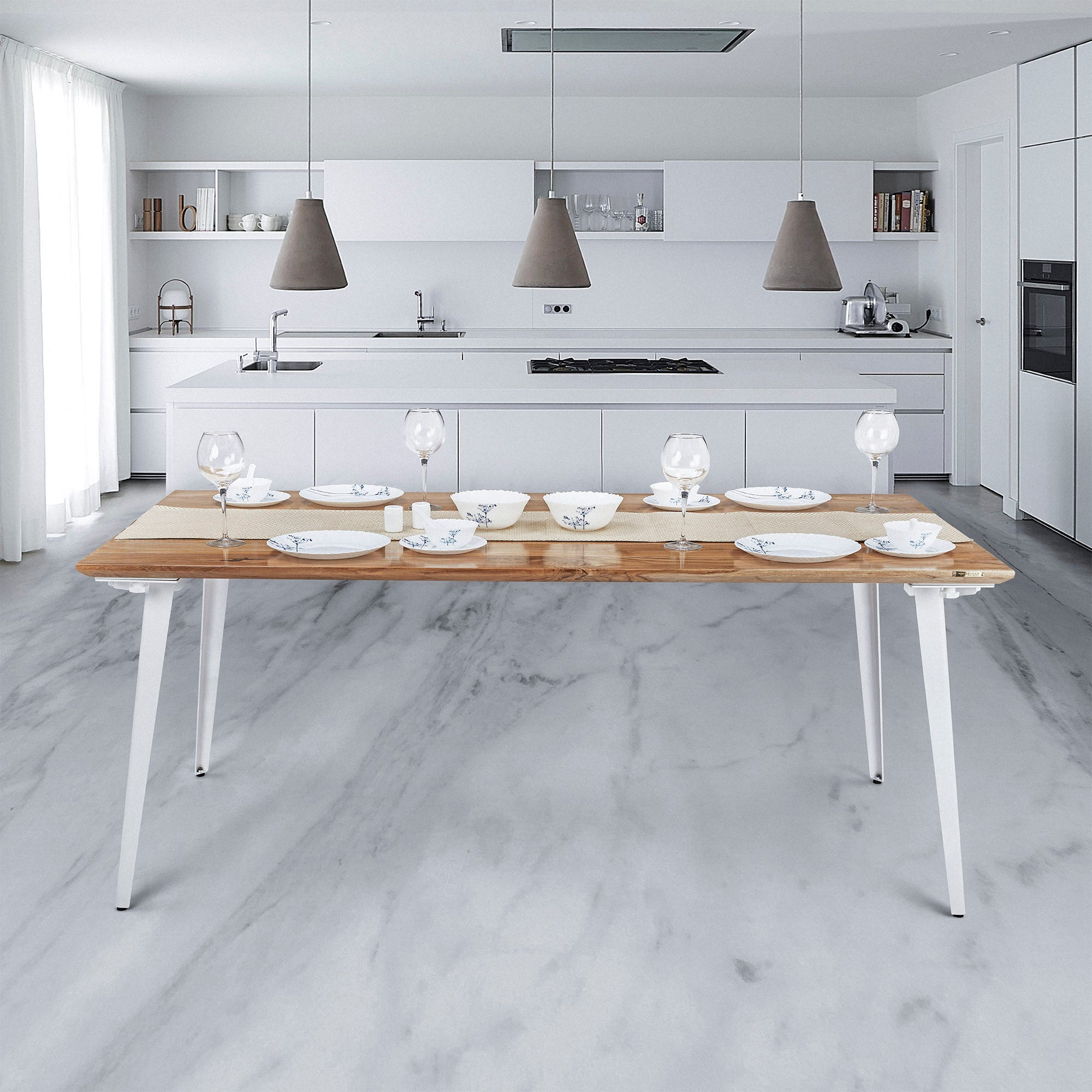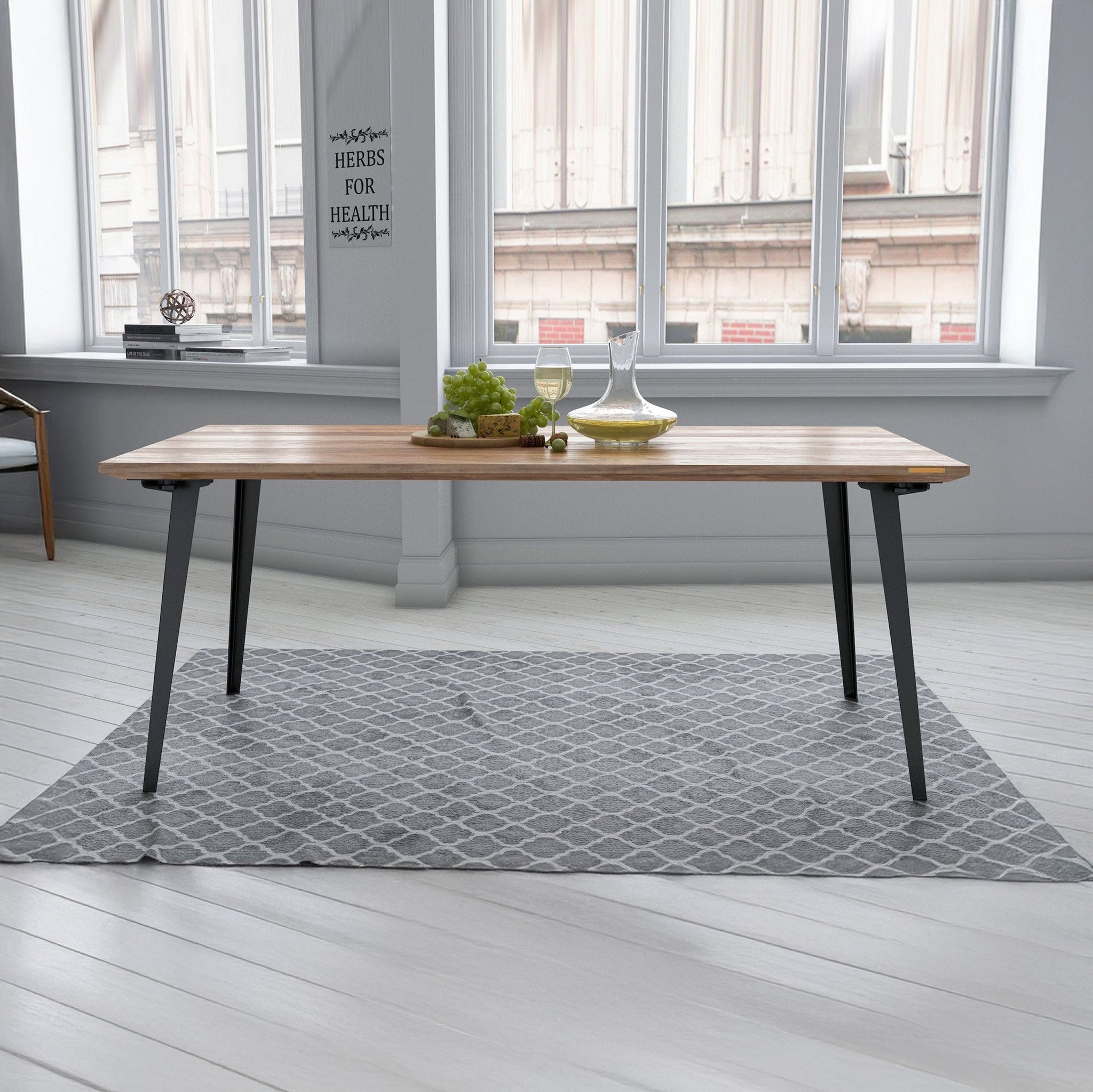 Inspired by modern Scandinavian designs, our dining table has no visible support giving it a minimal look. The table uses groundbreaking & innovative steel stiffeners that are flush with the bottom surface to give it a rock-solid groundedness.