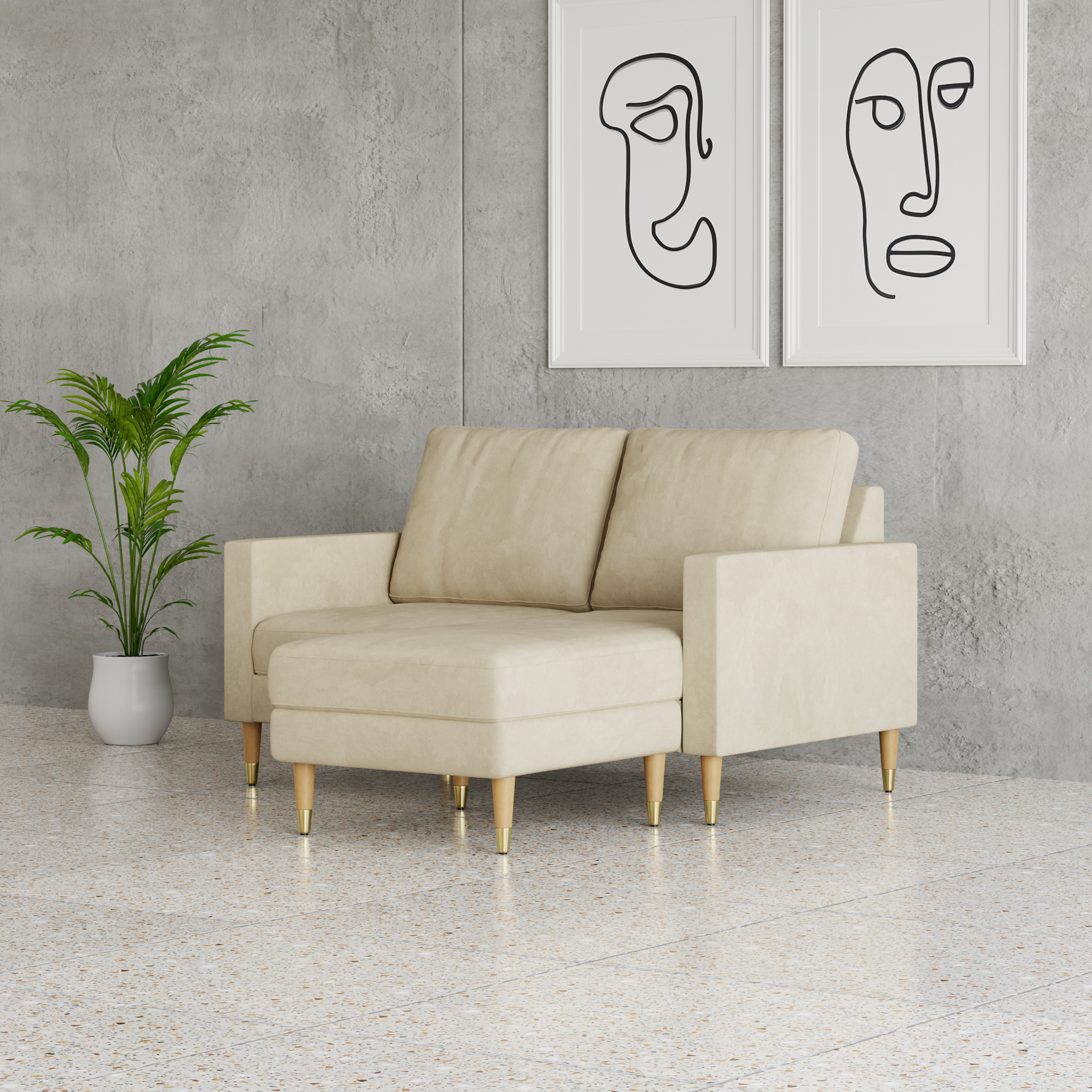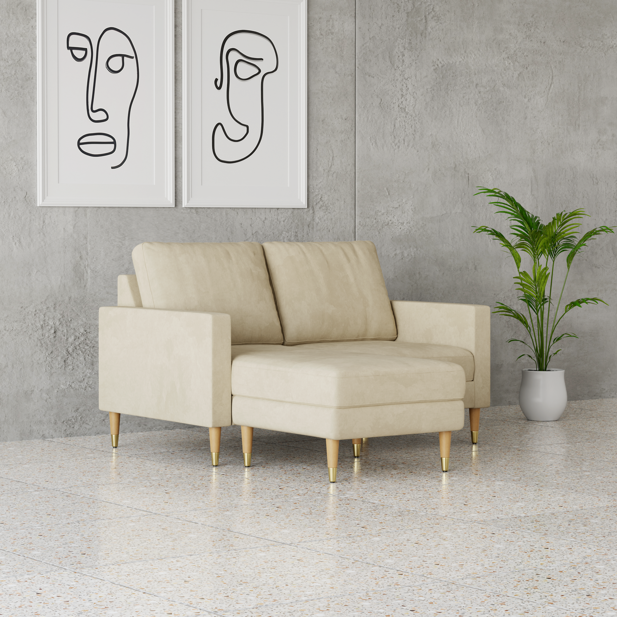Welcome home to our compact L-shaped 2-seater sofa: where cute meets quality, and compact meets comfort.