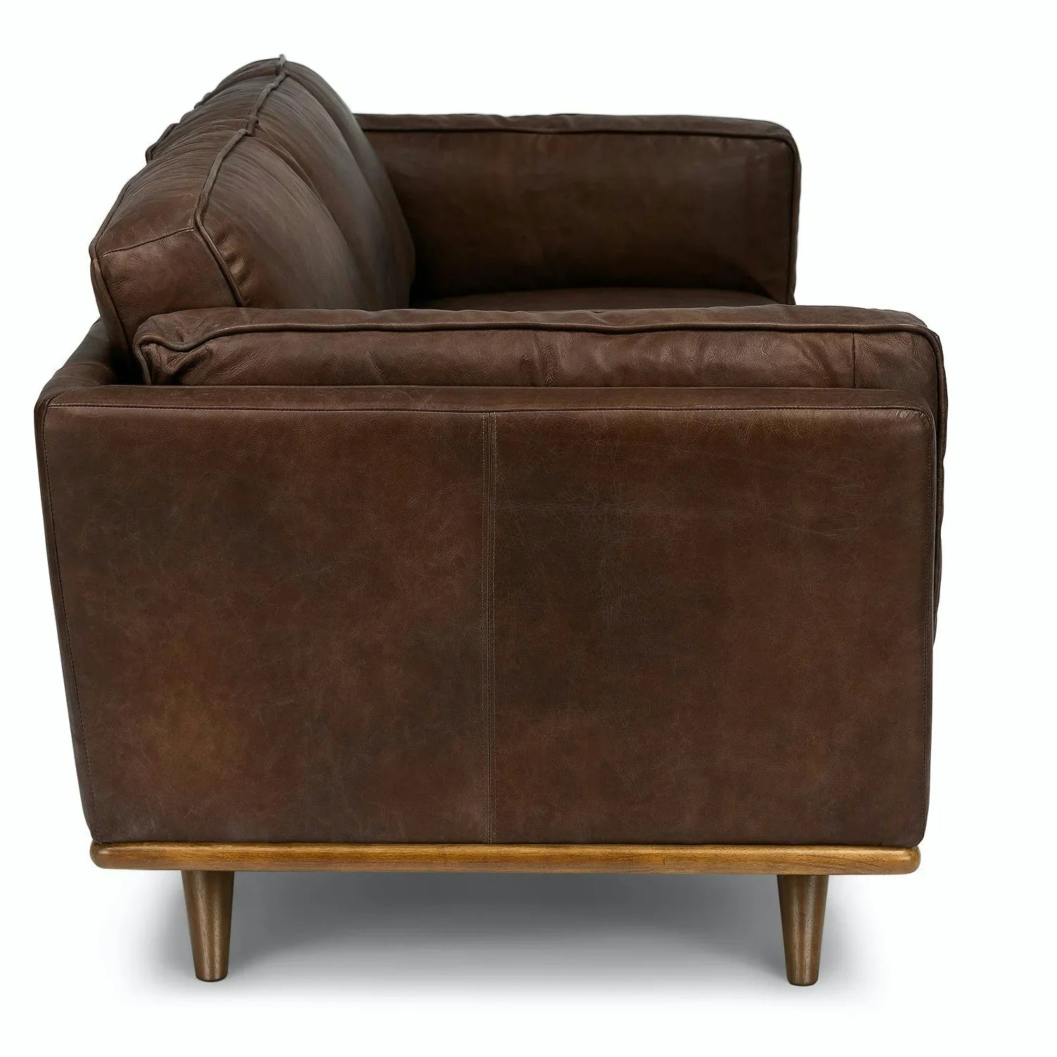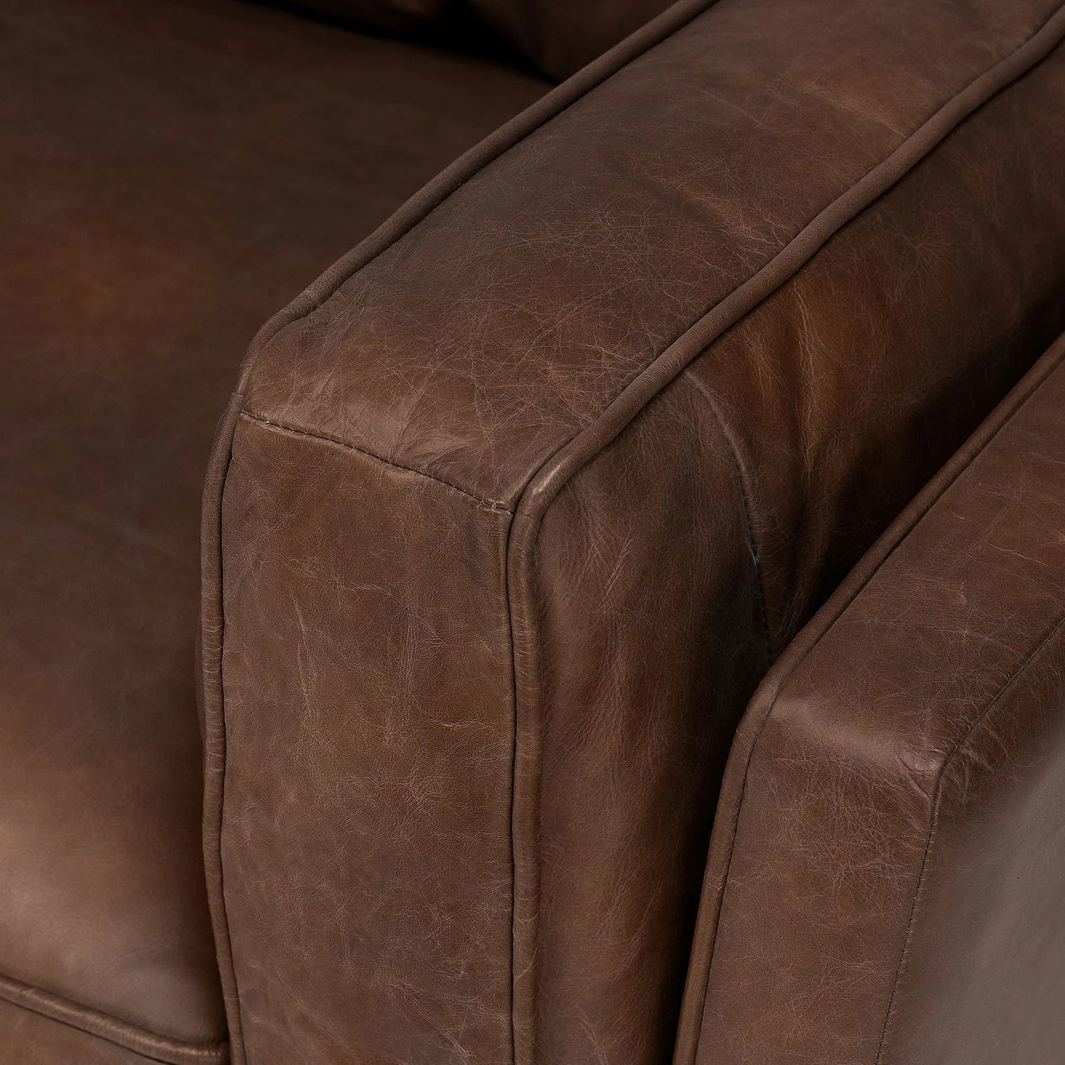 For those who appreciate luxury and durability, the Lumo Three-Seater in genuine leather offers exceptional comfort and ample space for lounging or hosting. Built with a solid teak wood frame and legs, this sofa is designed to last a lifetime. The cushions, filled with a premium blend of foam and down feathers, deliver a plush yet supportive seating experience. With loose seat and back cushions, plus two arm cushions, the sofa provides an inviting balance of structure and softness. Upholstered in top-grain genuine leather, the Lumo not only looks sophisticated but is also easy to maintain. Assembly is simple and takes just 15 minutes, making it ready for use in no time.