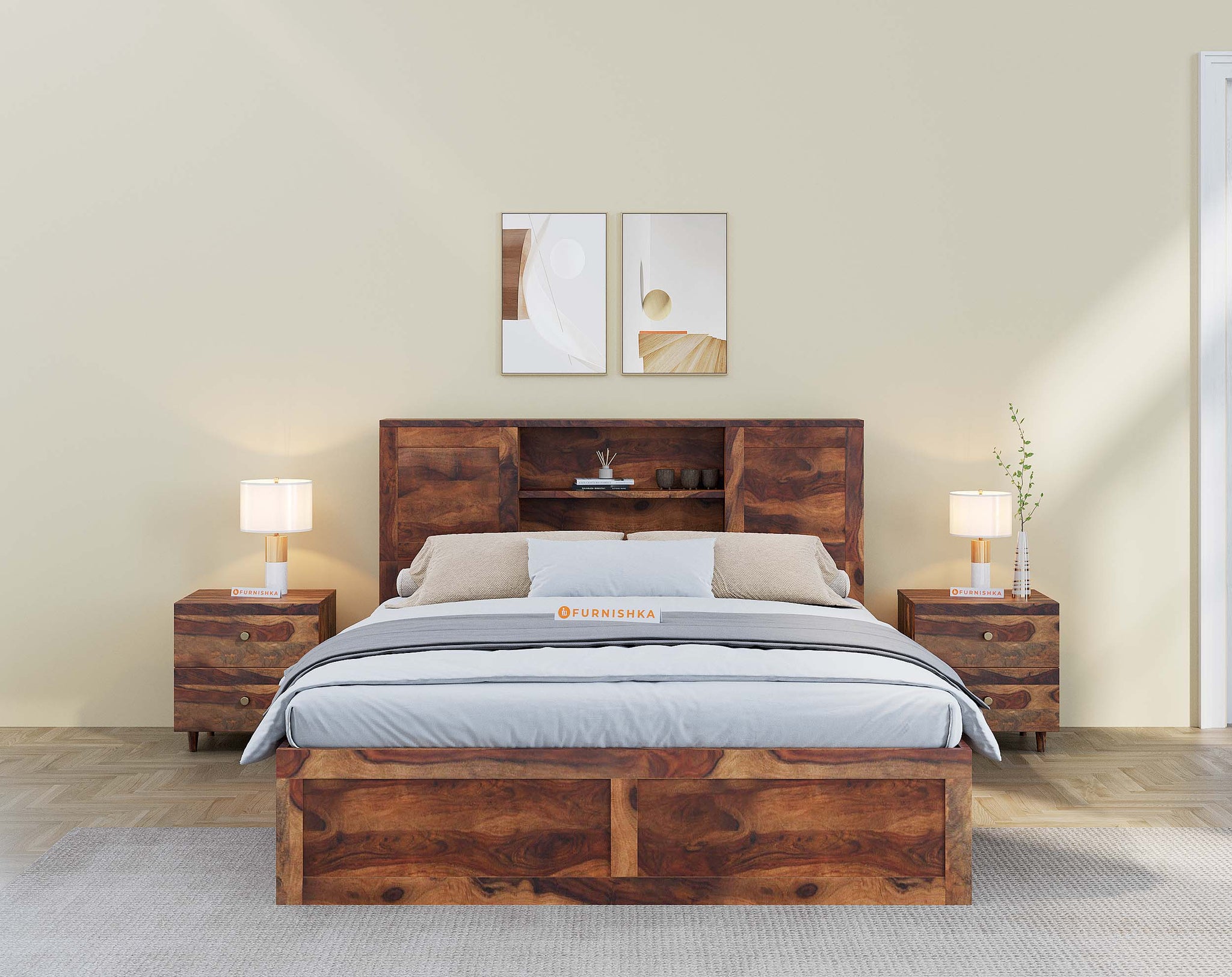 The Marida Bed is a sturdy real sheesham wood bed with storage options including hydraulic storage. Designed for noise-free use and backed by a lifetime termite warranty.