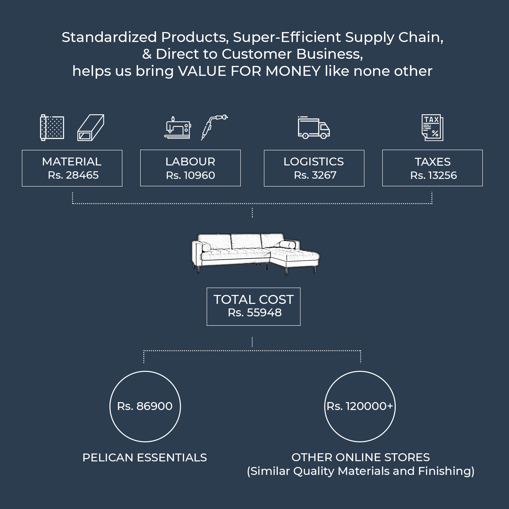 Palo Sofa T | L-Shaped Sectional with Chaise (8.25 feet length) | Tufted